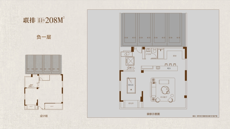 208戶型鑒賞: 大花園:戶均擁有約120㎡以上私屬庭院,可打造花園、茶室或親子活動空間,延伸生活詩意 三開間:約10.7米南向面寬,首層層高約3.6 米,采光通風俱佳,營造朗闊起居格局。 高附贈:地下室面積約108㎡,約 5.5 米挑高,可隔成兩層,打造影音室、健身房、酒窖等多元功能區(qū);一層餐客廳挑空,可拓展約43㎡贈送空間;二層、三層配備景觀露臺,陽臺半贈送;四層星空露臺全贈送,解鎖生活多重想象。