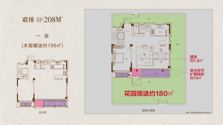維投·山河序聯(lián)排產(chǎn)品以“大花園、三開間、高附贈”三大硬核產(chǎn)品力,再次刷新?lián)P州主城別墅市場天花板!聯(lián)排產(chǎn)品均采用約10米南向三開間設計,首層層高達3.6米,實現(xiàn)室內(nèi)通透采光與空氣對流;附贈設計上,地下約5.5米挑高空間可隔成兩層、首層餐客廳挑高空間及多露臺贈送。以建筑面積約208㎡戶型為例,實際使用面積最大可超約800㎡,院子最大可達約360㎡,滿足四代同堂全周期生活需求,實現(xiàn) “有天有地” 的名仕院居理想。